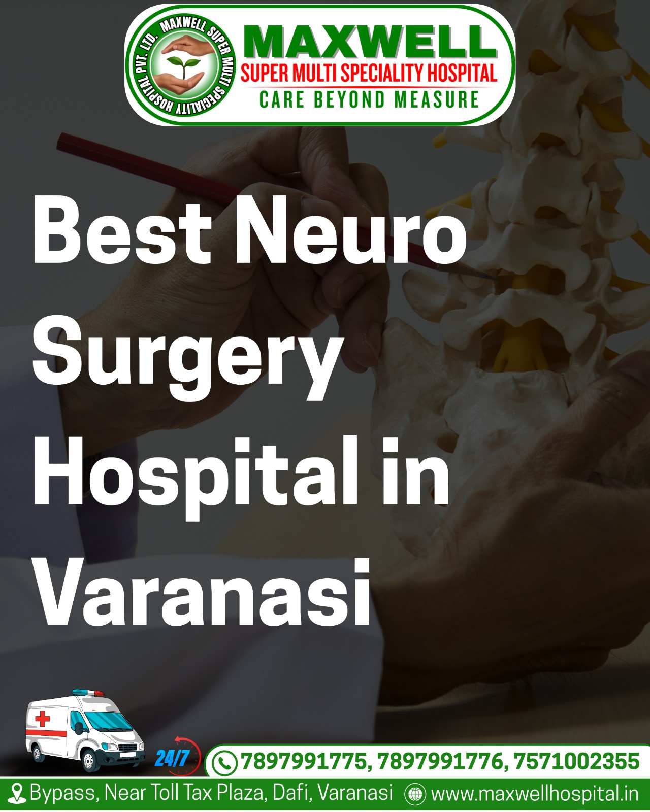 With advanced infrastructure, multidisciplinary expertise, and round-the-clock emergency care, Maxwell Super Multi Speciality Hospital stands proudly as the best neuro surgery hospital in Varanasi. “Because when it comes to the brain and spine, there is no room for compromise.”