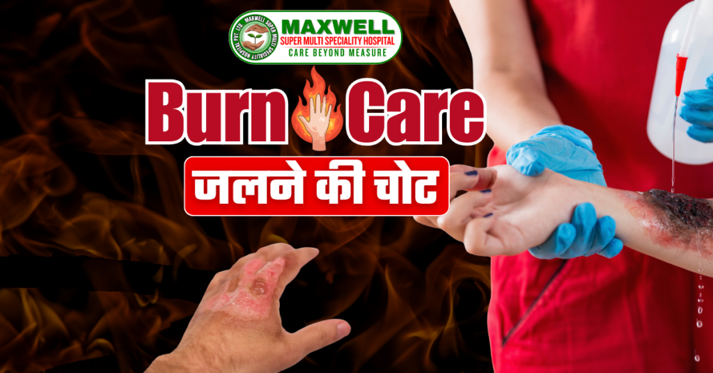 Maxwell Super Multispeciality Hospital में burn injury के इलाज के लिए modern medical support उपलब्ध है।